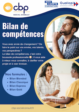 Toutes les phases du bilan sont menées sous forme d’entretiens personnalisés (en présentiel ou distanciel selon la formule Bilan retenue – voire brochure et/ou site Internet https://www.cbp socialconsult.fr)